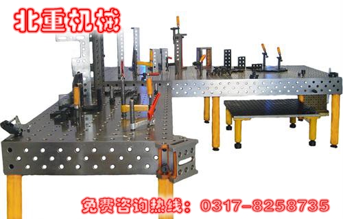 機(jī)器人焊接平臺(tái)的承載能力高,鋼性穩(wěn)定,它的五個(gè)面均加工有規(guī)則的孔,并刻有網(wǎng)線。焊接平臺(tái)可方便地延伸和擴(kuò)展,組合。經(jīng)擴(kuò)展的標(biāo)準(zhǔn)臺(tái)面可模塊化的定位和夾緊直接連接在一起。在安裝、調(diào)整和定位工件過(guò)程將柔性三維組合焊接工裝系統(tǒng)的通用功能展示的淋漓盡致,尤其在了大型工件方面的應(yīng)用上。