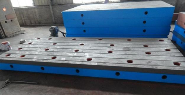 鉚焊平臺(tái)用于鉚焊工藝的基礎(chǔ)平板,工作面上有孔和T型槽,孔主要用來(lái)清理鉚焊時(shí)的一些鐵渣和焊接廢棄物,T型槽主要是用來(lái)固定焊接件。