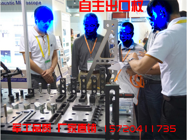 所有模塊加工精度均較高,工作平臺(tái)上任意兩個(gè)孔的公差在±0.1mm以內(nèi),完全可以滿足焊接加工的需要。在裝配或焊接過程中,使用定位塊、連接塊、夾緊器和支撐塊,能夠?qū)ぜ_定位,需要焊接的工件可以被穩(wěn)定地固定在各個(gè)定位點(diǎn)或定位面上。如果工件本身的幾何尺寸不準(zhǔn)確,也可以很快被檢測(cè)出來,在初加工工序中便被消除。